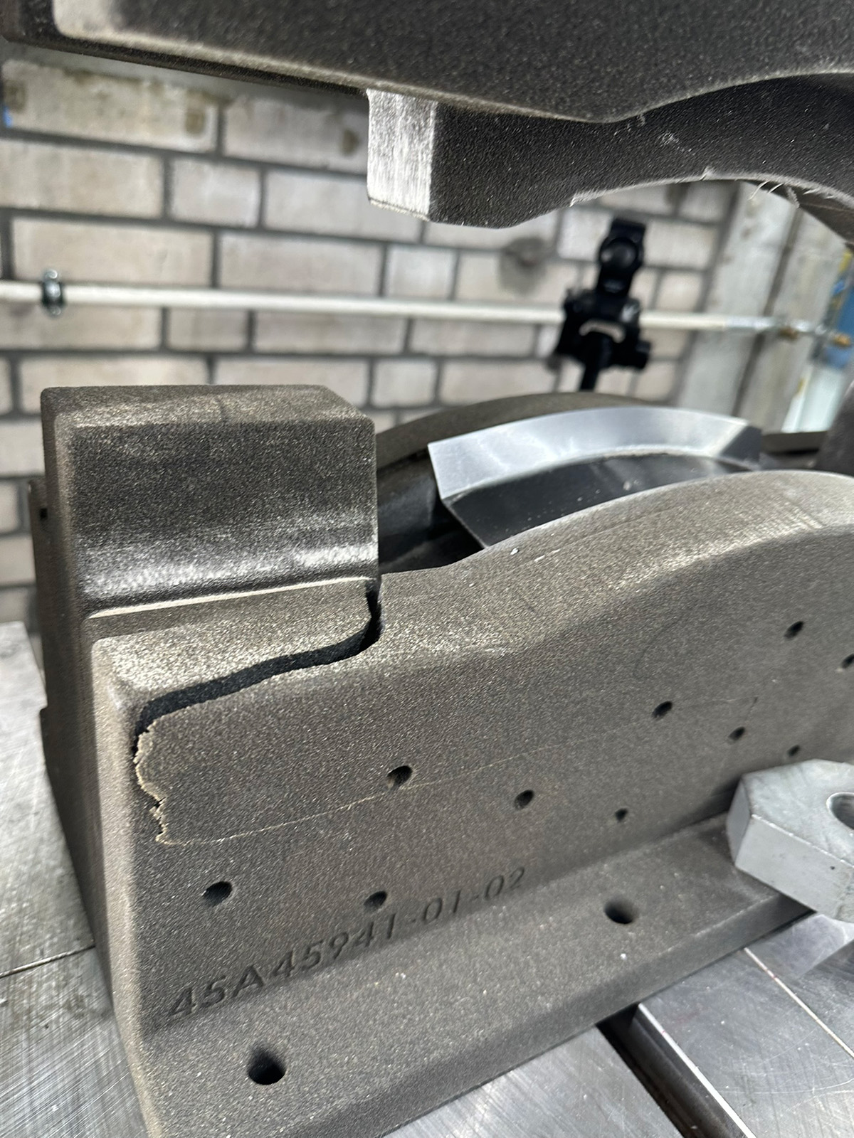 Wie bei jedem Experiment lassen sich trotz erzielter Erfolge stets Optimierungspotenziale identifizieren. Es wurde festgestellt, dass die unteren Werkzeuge nach der Prüfung mit dem Stahl DP600 Brüche aufwiesen (siehe Bilder unten). Die oberen Werkzeuge sind von dem Schaden nicht betroffen.