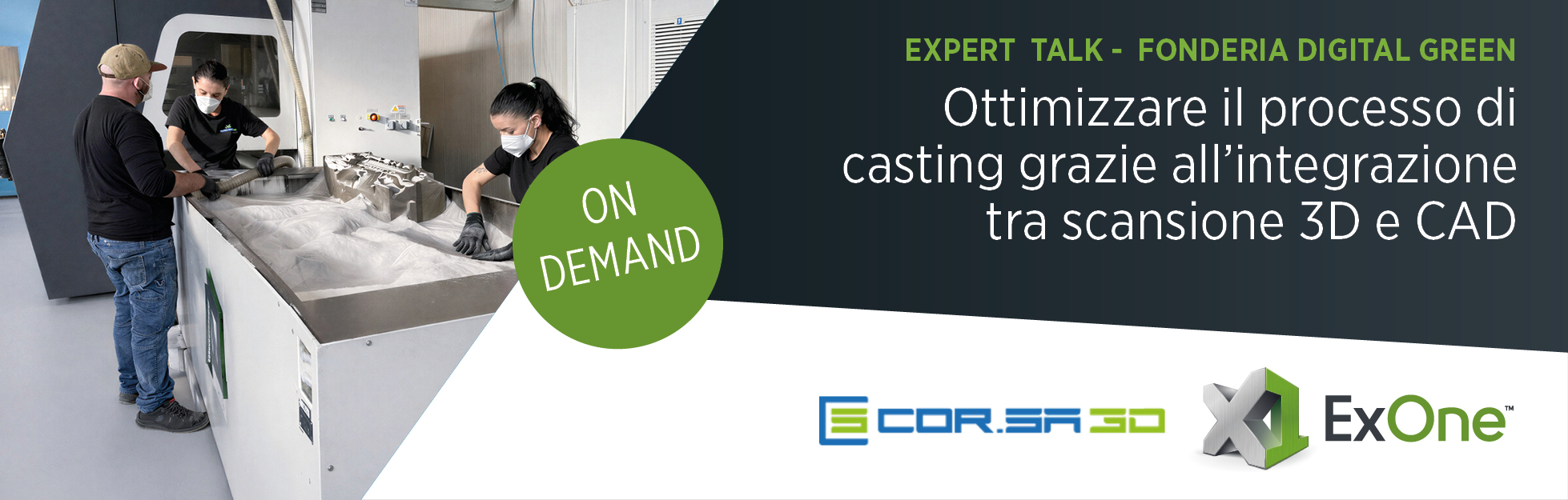 Guarda la registrazione del webinar esclusivo per scoprire come aziende come Corsa3D e Fonderie Gattelli stanno implementando con successo la tecnologia di stampa 3D binder jetting di ExOne per rivoluzionare il loro modo di lavorare.